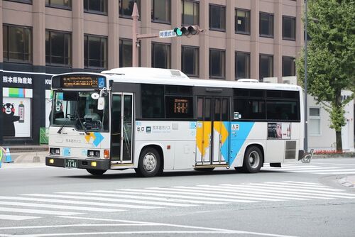 事業者:熊本都市バス (元・横浜市交通局) 登録番号:熊本200か 1141 車番: 型式:KK-RJ1JJKK シャーシメーカー:日野 ボディメーカー:日野車体工業