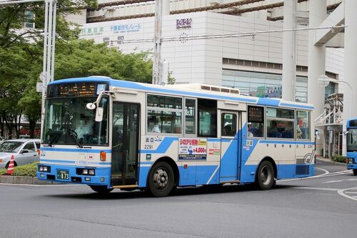 事業者:熊本都市バス (元・国際興業) 登録番号:熊本200か 1499 車番: 型式:KL-LV280L1 シャーシメーカー:いすゞ ボディメーカー:いすゞバス製造